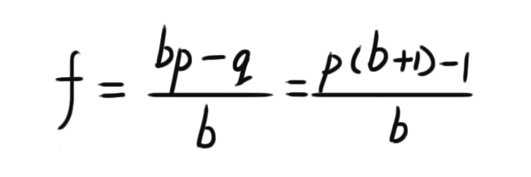 回归到投资讨论这个公式,根据f=(bp-q)/b公式结论,期望值(bp-q)为负时,投资者不具备任何优势,也不应继续投资。
