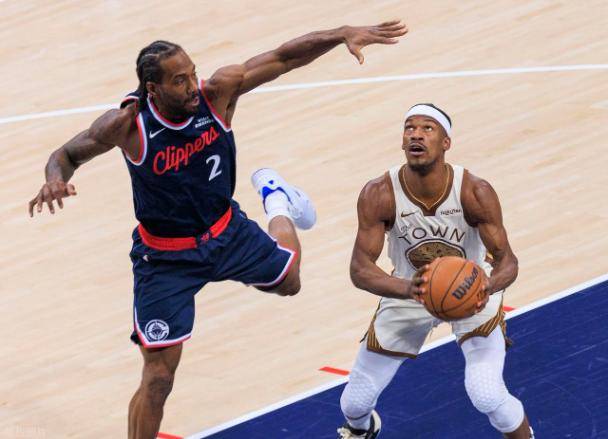比赛一开场,勇士的吉米·巴特勒就给了伦纳德一个下马威,生断了他的球反击上篮。勇士的策略很明确,就是死掐伦纳德这一点。快船这边,哈登因为右肩膀酸痛坐着看球,能组织进攻的人少了一个。球更多时候被迫交到伦纳德手里,而勇士的防守像一张网,巴特勒、德雷蒙德·格林,还有那些年轻的小个子,轮番上阵,不停地骚扰、夹击。伦纳德每一次转身,几乎都面对两个人。他投了25个球,只进了10个,最拿手的三分线外一次都没开张。第三节他一次运球突破,又被巴特勒快手切掉,球直接出了边线。他摇了摇头,没说话。