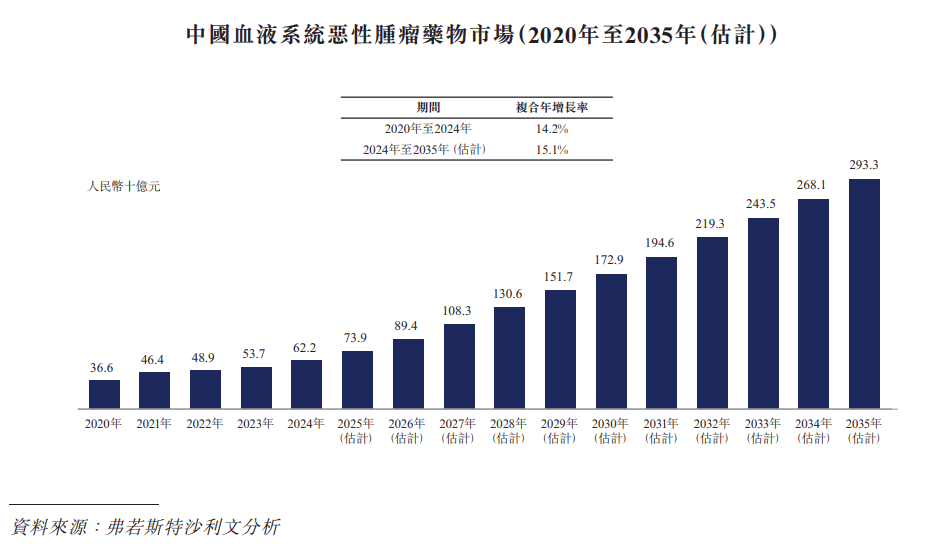 在中国,受靶向血液系统恶性肿瘤的创新疗法获批及患者生存率改善所推动,血液系统恶性肿瘤药物市场由2020年的人民币366亿元扩张至2024年的人民币622亿元,复合年增长率为14.2%,并预计于2035年将达到人民币2,933亿元,2024年至2035年的复合年增长率为15.1%。