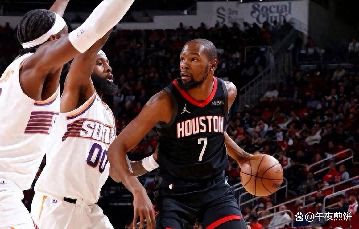 今天,杜兰特21投9中,三分球其实铁得离谱,12次出手只进了2个。但没关系,只要进最该进的那个就行了。全场26分10篮板4助攻,最后1.1秒,他接球,转身,面对布克,拔起就投,没有丝毫犹豫。这就是超级巨星的底气,也是火箭砸下重金换来他的原因,买的就是这份在绝境中依然敢出手、能命中的硬解能力。