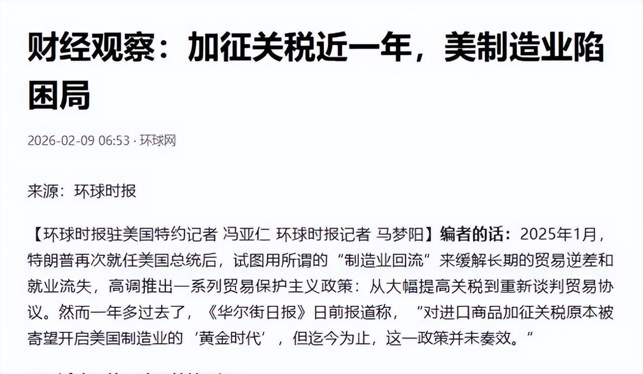 一年之后,全球经济和格局的变化显而易见。根据国际货币基金组织的报告,2025年全球经济增速与2024年持平,预计2026年将趋于稳定。联合国贸发会议的数据则显示,2025年全球贸易额增速超过了2024年,各国纷纷寻找替代贸易渠道,全球贸易格局正在悄然变化。2月11日,美国众议院以219票对211票通过了决议,决定终止对加拿大商品的惩罚性措施,其中6名共和党议员投了赞成票。全球范围内,约380个有效区域贸易协定中,美国仅参与了其中的14个,盟国之间签署新协议、建立新网络的步伐加快,显然,美国主导的旧有贸易体系正在逐渐被边缘化。回顾这一年,事实数据摆在眼前:美国的贸易逆差进一步扩大,制造业并未回流,消费者的花费增多但选择减少,盟友间的关系逐渐松动。而中国则在市场再平衡和产业升级的道路上不断前行。特朗普挥舞的关税大棒,最后的结果还是狠狠砸在了美国自己头上。返回搜狐,查看更多